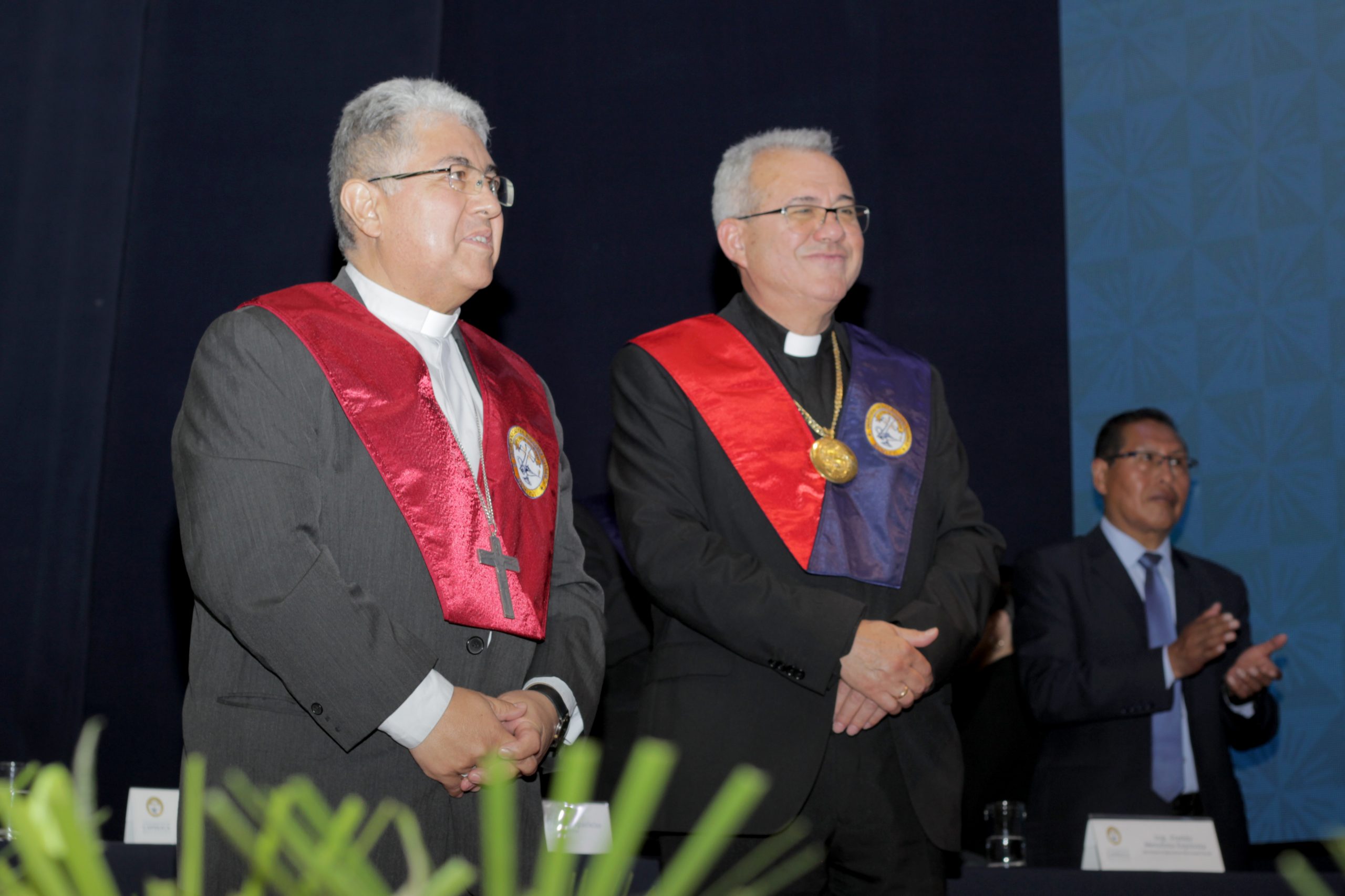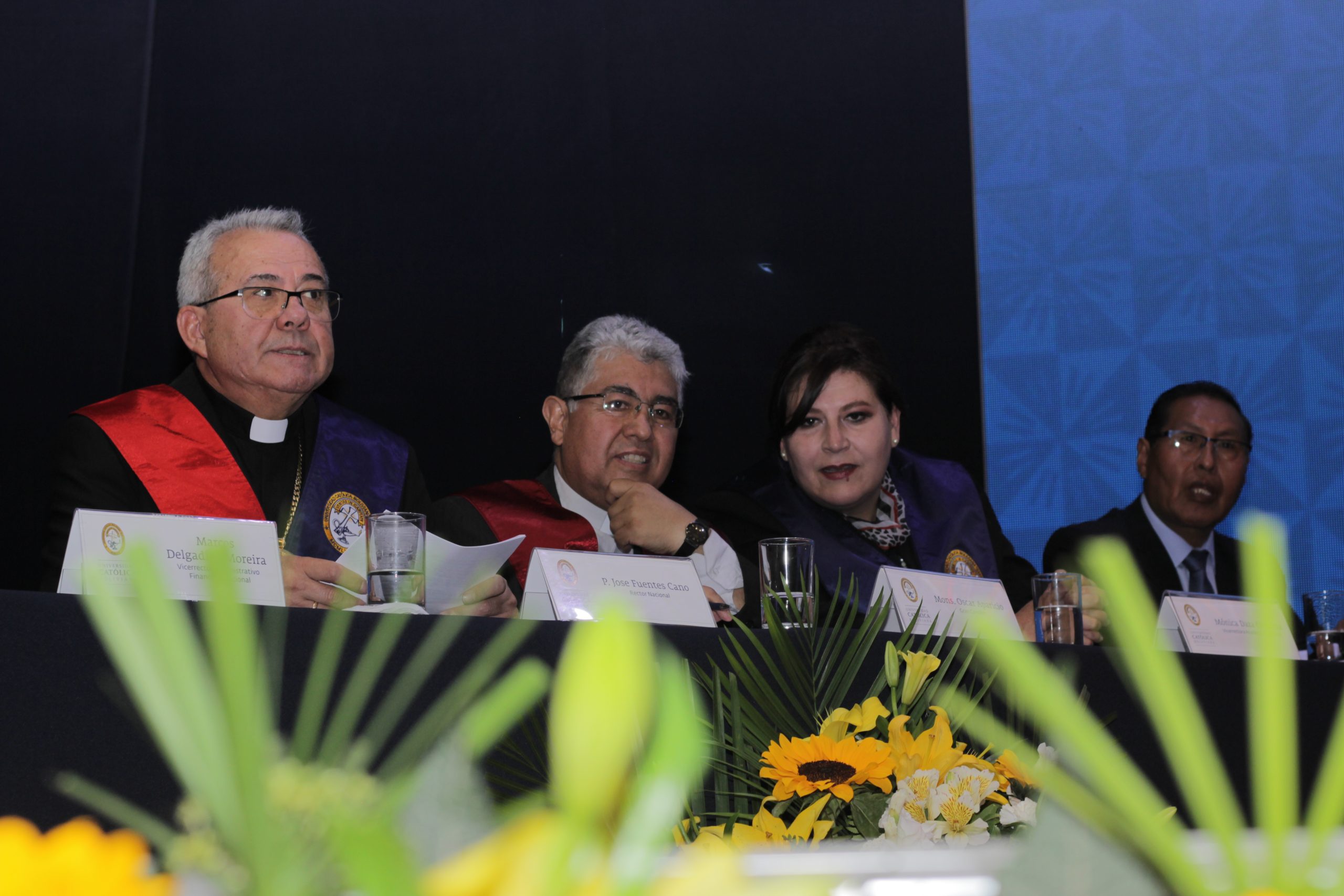 El Rector Nacional cerró sus palabras diciendo: “Hoy nos comprometemos a conocer mejor la enseñanza del Papa Francisco, a construir una universidad con clara identidad cristiana, defensora de los principios del Evangelio, una universidad que colabore a construir una sociedad más justa, fraterna e igualitaria y una universidad misionera, comprometida con la evangelización, a través del diálogo entre la ciencia y la fe”.