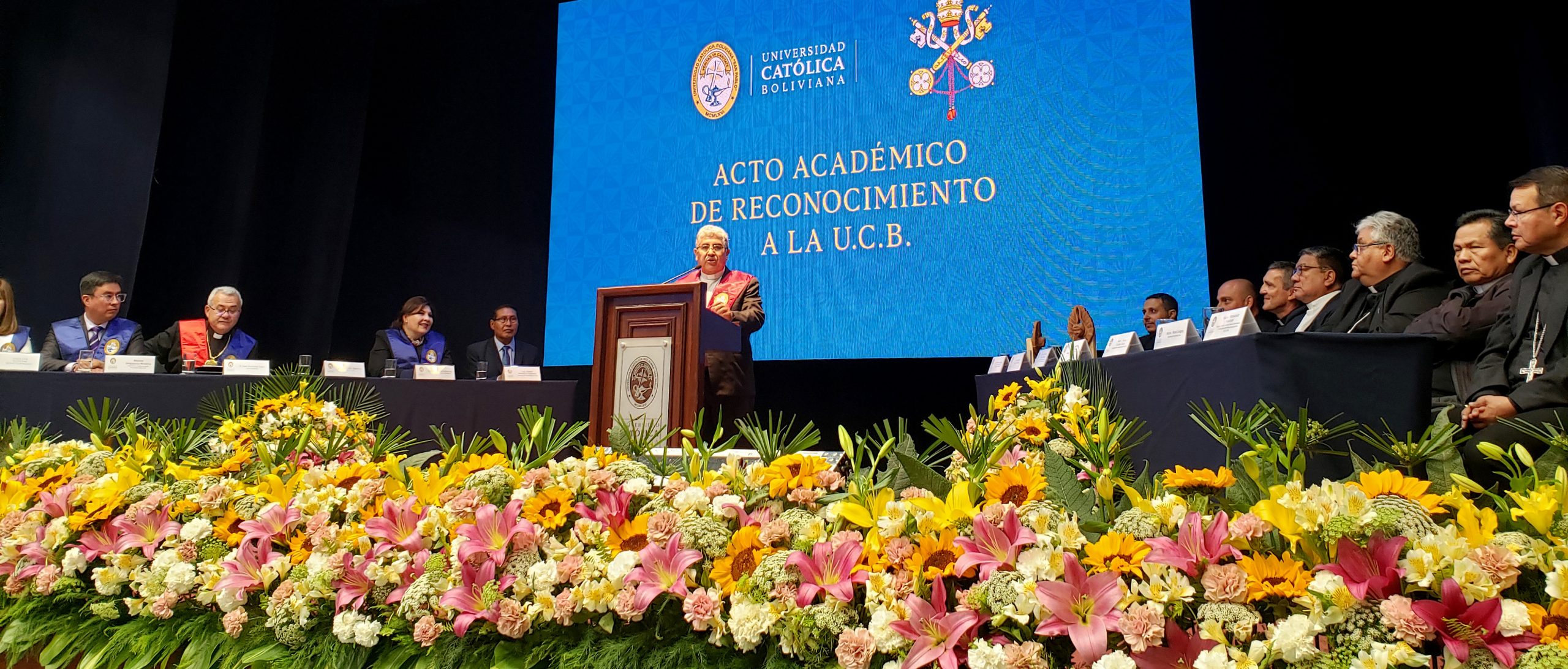 Radio Betania. La Universidad Católica Boliviana “San Pablo” (U.C.B.) reconocida por su estrecha relación con la Santa Sede y la misión evangélica del Papa. Este miércoles 6 de septiembre en acto académico de celebración especial realizado en la Sede La Paz, la U.C.B. fue erigida canónicamente como la universidad que en Bolivia se distingue por su historia, calidad educativa y servicio eclesial en estrecho vínculo con la misión evangelizadora de la Iglesia en el mundo.